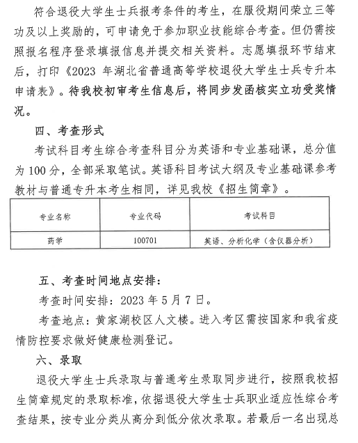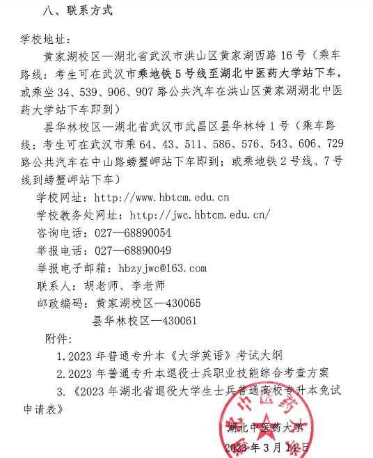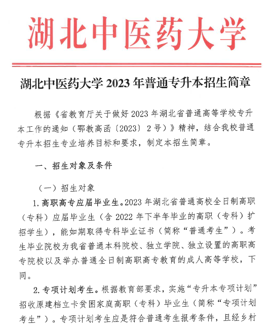 以上就是自考本科网为广大自考考生带来的“湖北中医药大学2023年普通专升本招生简章”内容!