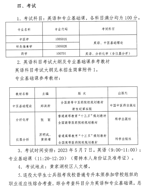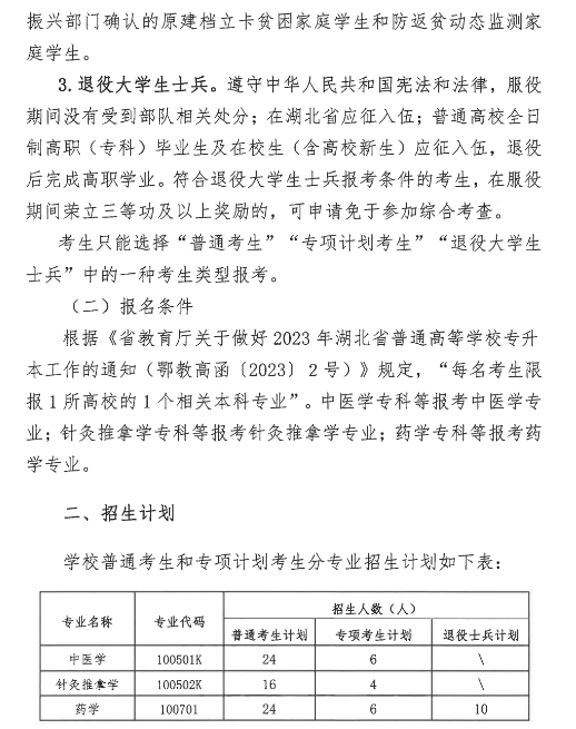 湖北中医药大学2023年普通专升本招生简章