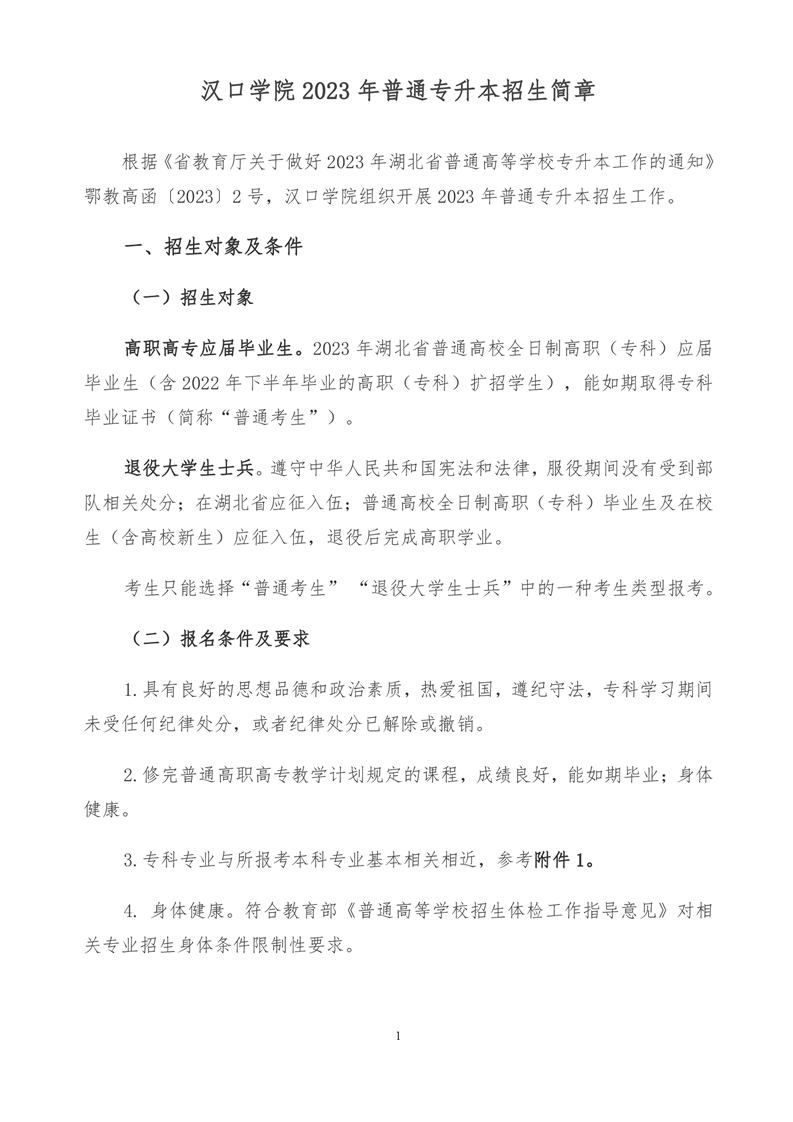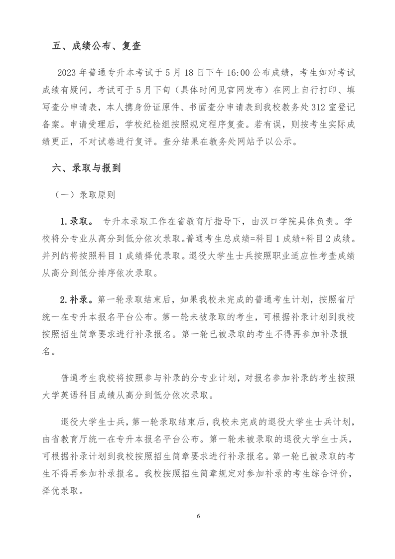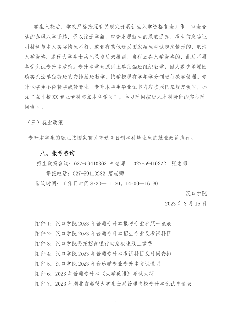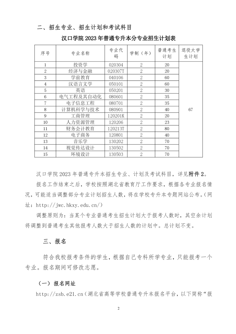 汉口学院2023年普通专升本招生简章