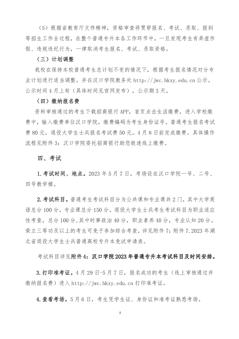附件4:汉口学院2023年普通专升本考试科目及时间安排